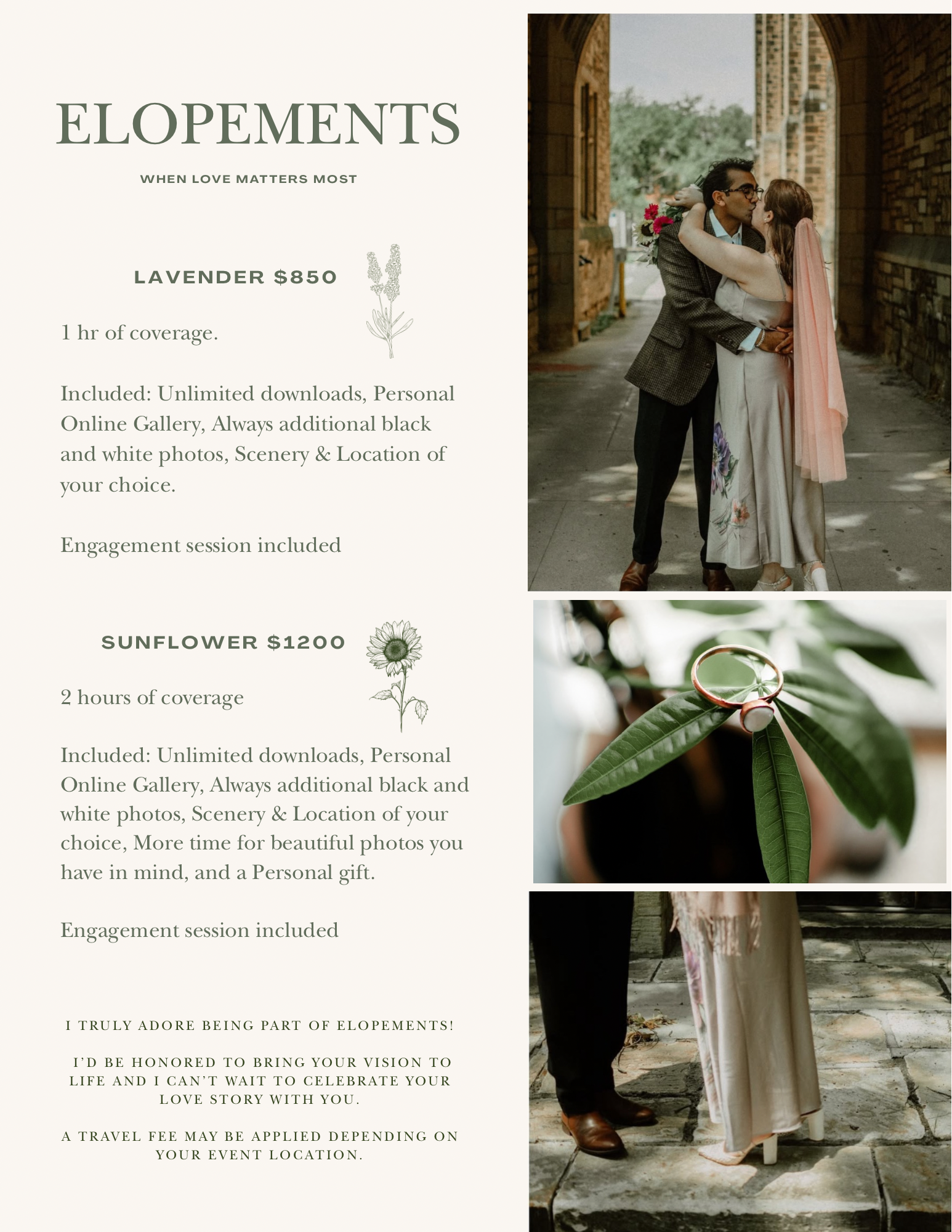 ~Why Elopements are just as meaningful as ‘big weddings’~ Why are you even getting married? Probably because you two fell in love in some way unexpectedly and want to make it official in a beautiful way! Maybe you want to elope because you do not want to deal with high priced venues, a food menu, and all the commotion. Although that does sound fun to some, focusing on just you two and hiring a photographer to capture this special moment in time is the investment that is worth it to you and is just as meaningful. Especially when you get to hang these photos in your living room and bedroom. ~